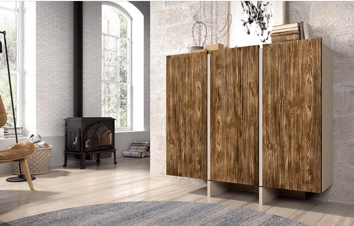 Mobles Català te ofrece este Aparador de 150 largo x 137 alto x 46 fondo, puertas en color Rústico Natural y armazón en Beige Cuero. Los colores siempre a elegir de un extenso muestrario. Con puertas normales vale 520’00 y con puertas en Rústico aumenta a 800’00.