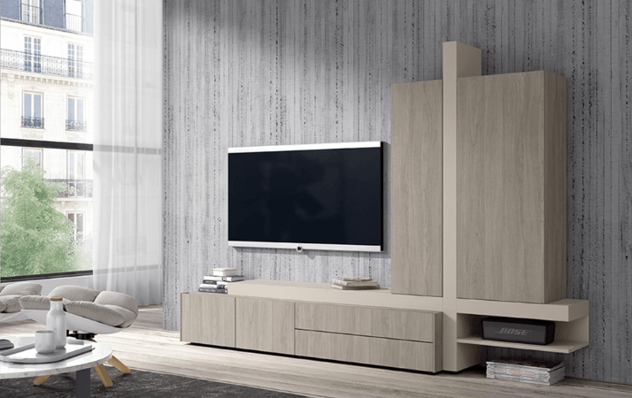 Mobles Català te ofrece esta Composición de 2’50 metros sin patas en colores Decapé Gris y Beige Cuero.