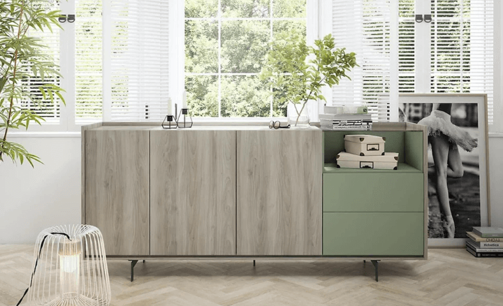 Aparador 200 x 90 alto, en color Noce combinado con Lago