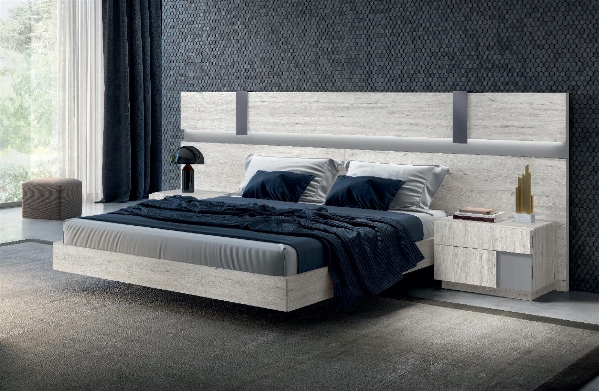 Conjunto en color Fresno, detalles cajones en Gris Fumé y detalles cabezal en color Zafiro