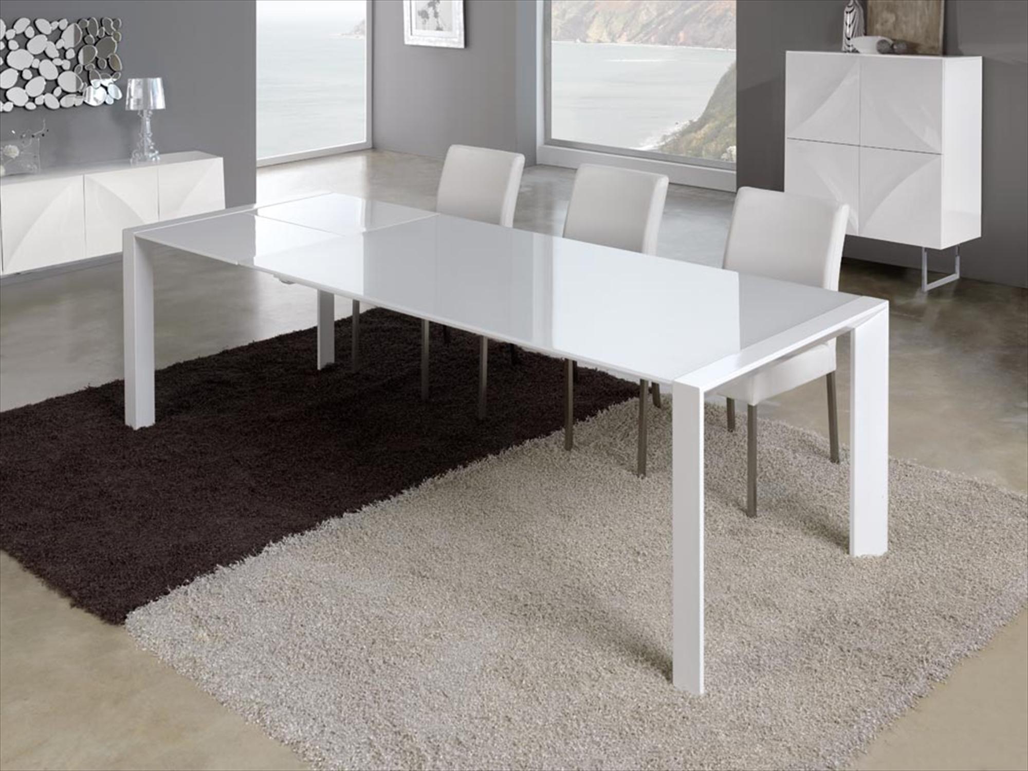 Mesa con la tapa de cristal, extensible lateral. Consultar medidas y acabados. Las sillas siempre a elegir.