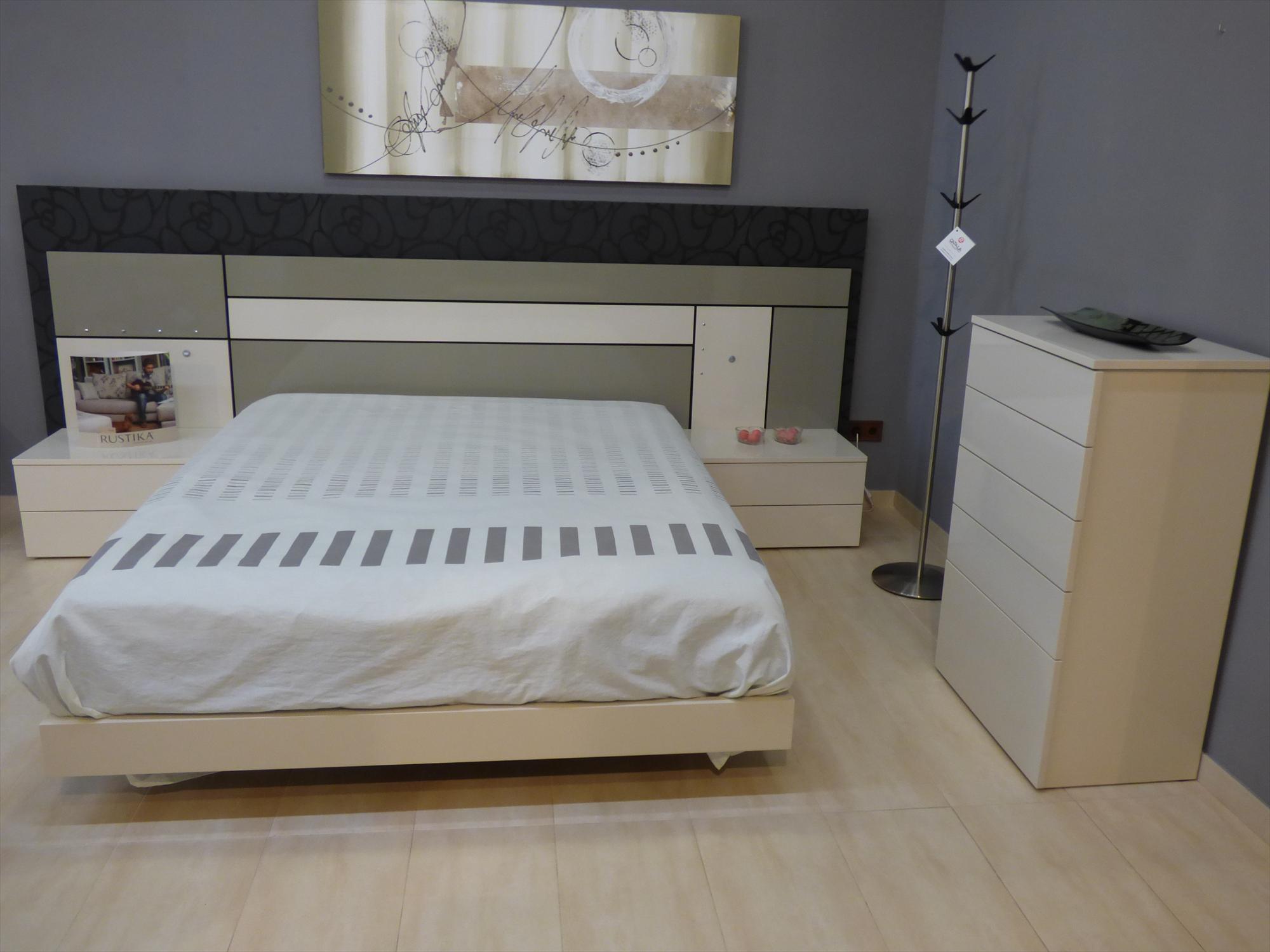 Cama 150 con bañera (Cabezal de 2’95 m, con luces), 2 Mesitas y Sinfonier. Todo lacado en Brillo en colores Crema y Moka.