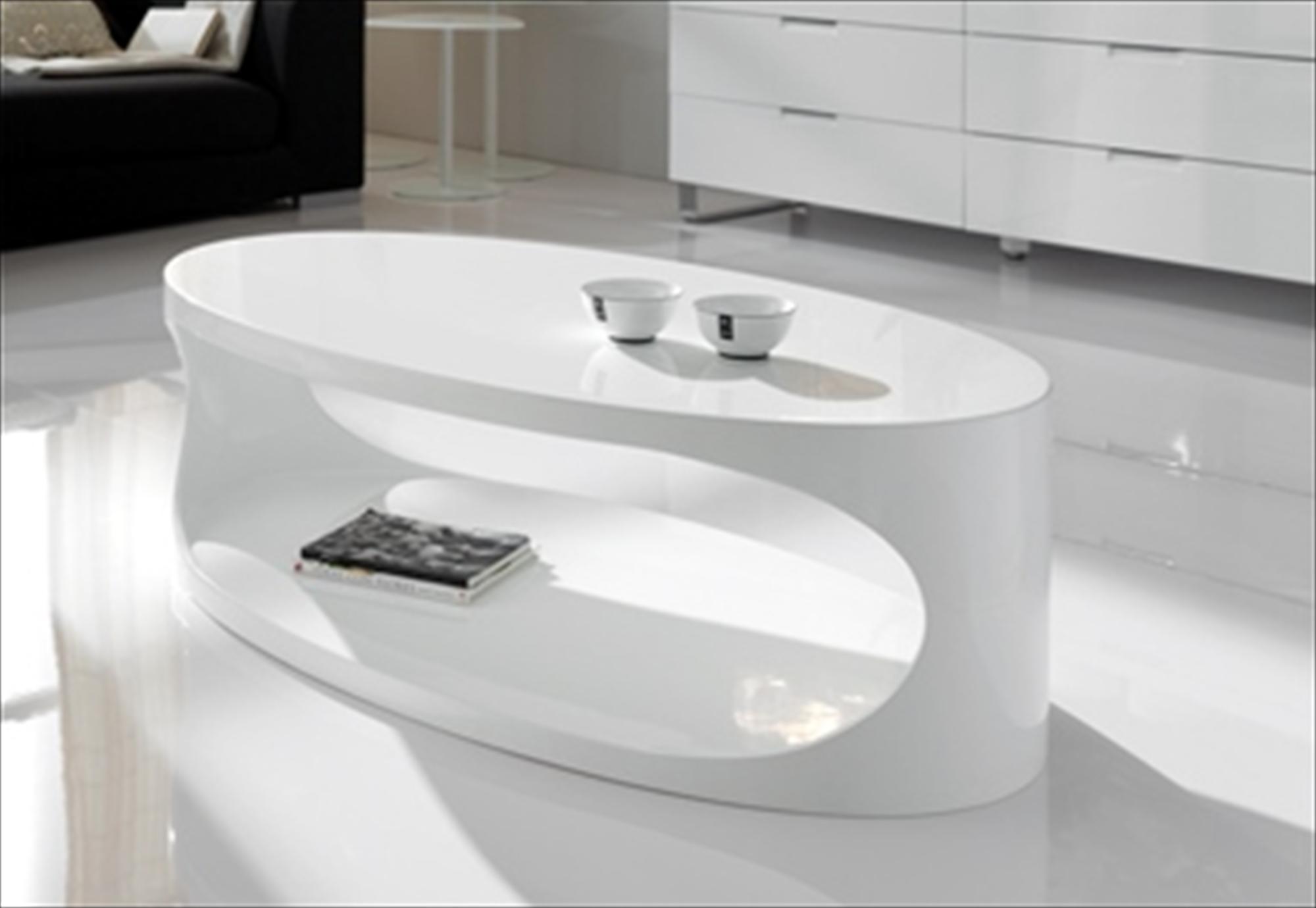 Mesa centro ovalada en resina sintética. También disponible en redonda, para el rincón lateral.