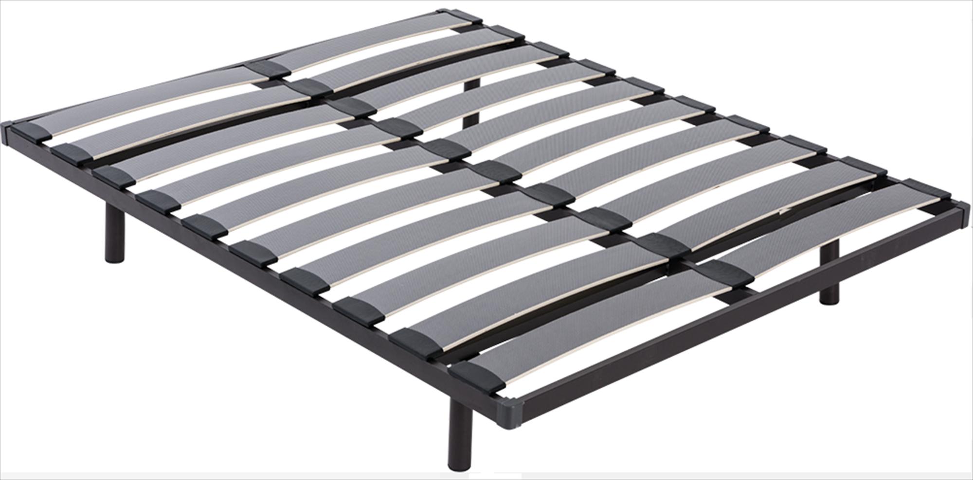 Somier de láminas gruesas y flexibles, con armazón metálico de 50 x 20 equipado con 2 barras inferiores de refuerzo que permiten colocar las patas más retiradas hacia dentro para que no molesten al pasar. Patas no incluídas.