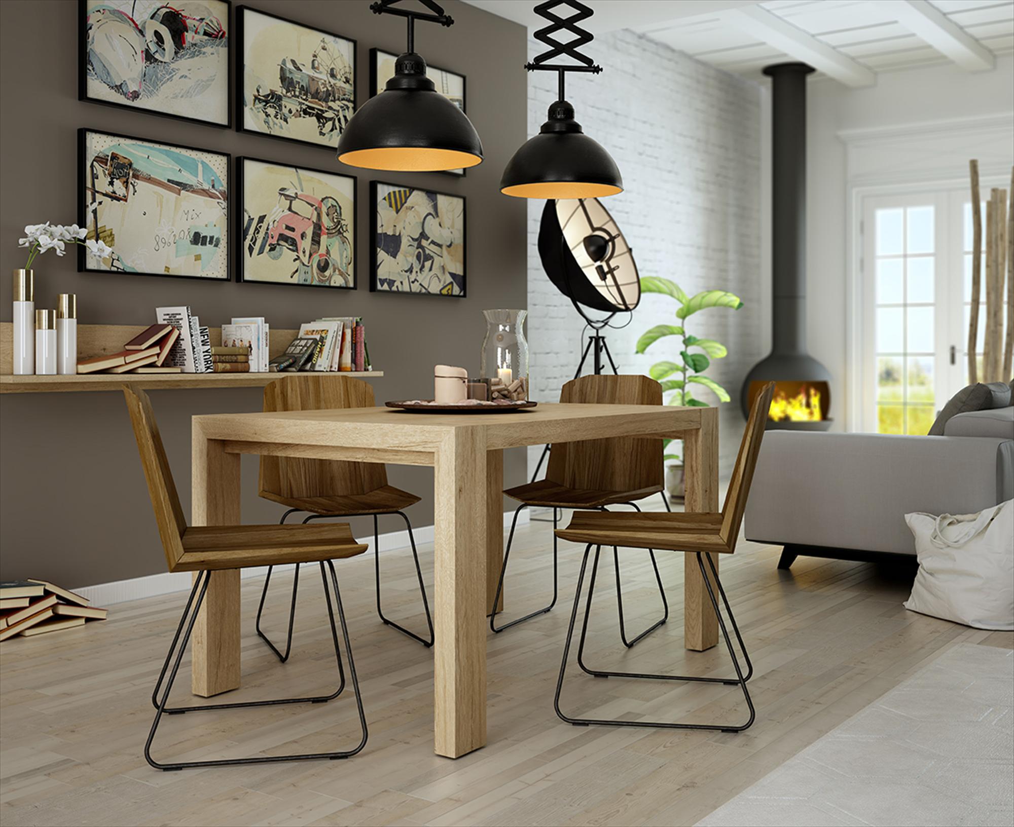 Mesa de 135×90 extensible lateral a 195, disponible en los colores más actuales. Las sillas siempre son a elegir.