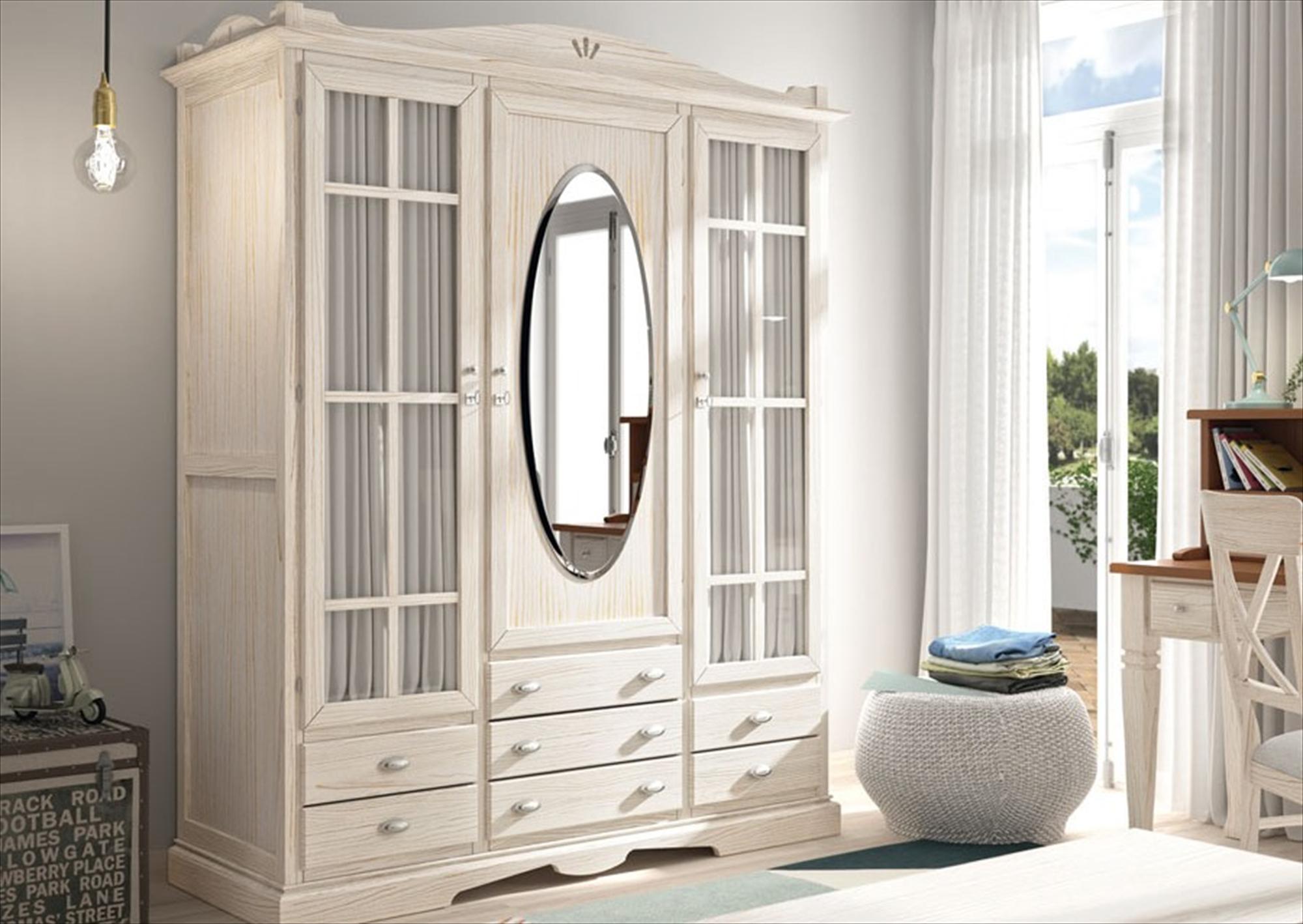 Detalle del armario de 3 puertas en color Blanco Albo. Las puertas pueden ser de visillos o de tableros.
