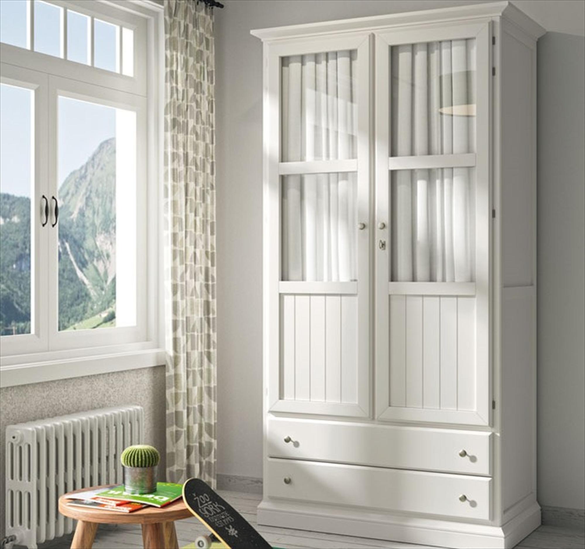 Detalle del armario en color Blanco Tosca. Los visillos se pueden cambiar por tableros.