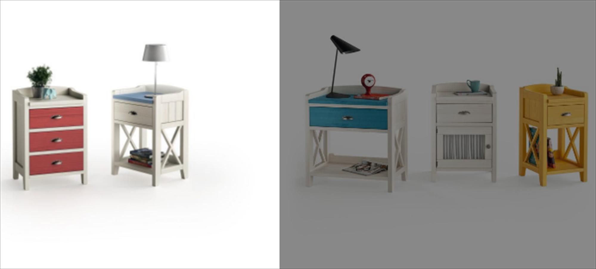 Posibilidades de mesitas. La puerta de visillo puede ser de tablero. Los colores siempre a elegir.