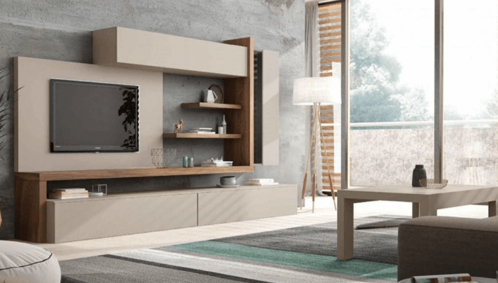 Composición 6, combinada en Arena y Nogal. El Panel TV es opcional.